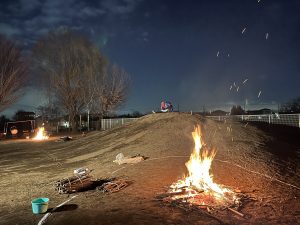 今年は風がとっても強い日だったのでドラム缶を使って焼き、子どもたちは元気にあそびながら待ちました