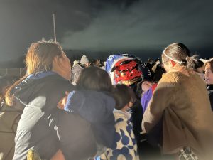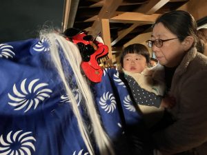 たき火の火と投光器にてらされながら太鼓をたたくあすなろさんの姿はとってもかっこよく土山から登場した獅子舞はとても迫力がありました