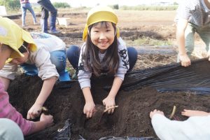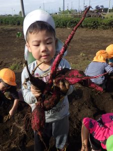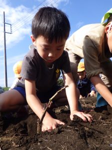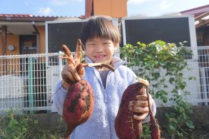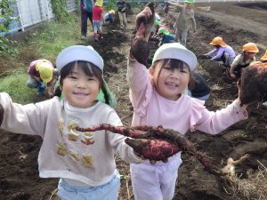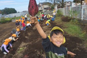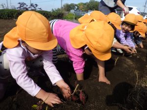 芋ほりは子どもたちが手で土を掘ったりお芋を引っ張って抜きます