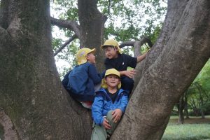 途中雨が降りましたが雨宿りしている木ですら登る元気な子どもたちです!