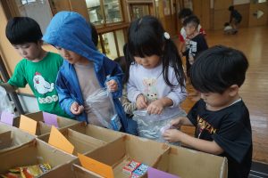 お家の人が作ってくれたおいしいお弁当をいい笑顔を見せながら食べていました