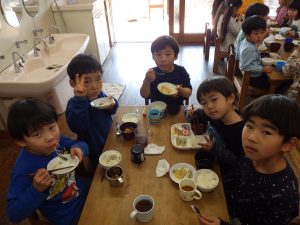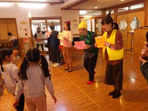最後に園長あいさつ、担任のあいさつをさせてもらってから、おやつなどのプレゼントをお渡しして終了となりました。