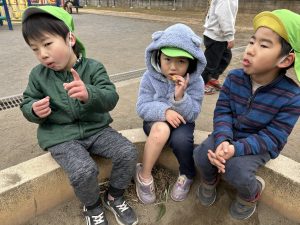 主役の子たちは、「やっと自分の番だ!」ととても嬉しそうでしたよ。卒園の会で歌った「みんなともだち」を皆んなで輪になって歌って、お待ちかねのお楽しみタイム。