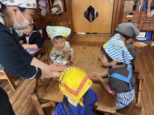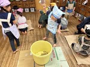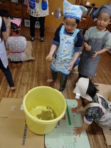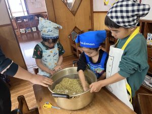大豆をつぶし終わった子から混ぜる作業に入りました