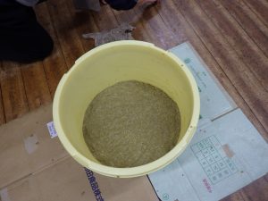 塩の塊がなくなるように!麹と塩がよくまざるとおいしい味噌ができるよ!